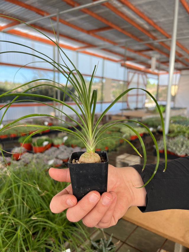Add a touch of tropical elegance to your home or garden with Beaucarnea recurvata, commonly known as the Ponytail Palm. This unique and stylish plant is beloved for its cascading, arching leaves and distinctive bulbous trunk, making it a striking addition to any plant collection.