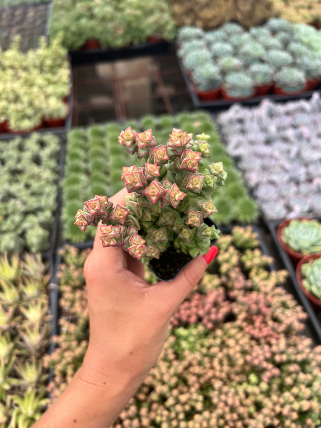 Elevate your succulent collection with Crassula rupestris ‘Tom Thumb’, a charming and compact succulent known for its tiny, densely-packed leaves and adorable growth habit. This delightful plant is perfect for small spaces and adds a touch of whimsy to any home or garden.