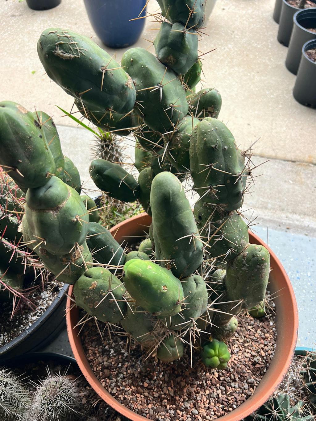 The Trichocereus bridgesii Monstrous commonly known as the Penis Cactus is a rare and sought-after mutated columnar cactus. Featuring smooth, segmented, irregularly shaped stems, this unique variety is known for its sculptural appearance. A great conversation starter for obvious reasons!