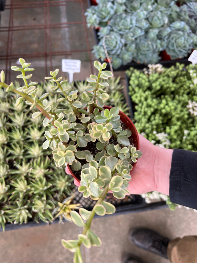 Enhance your plant collection with the vibrant beauty of Portulacaria afra variegata, commonly known as Variegated Elephant Bush or Rainbow Bush. This versatile succulent is celebrated for its distinctive foliage and hardy nature, making it an excellent choice for any plant enthusiast.