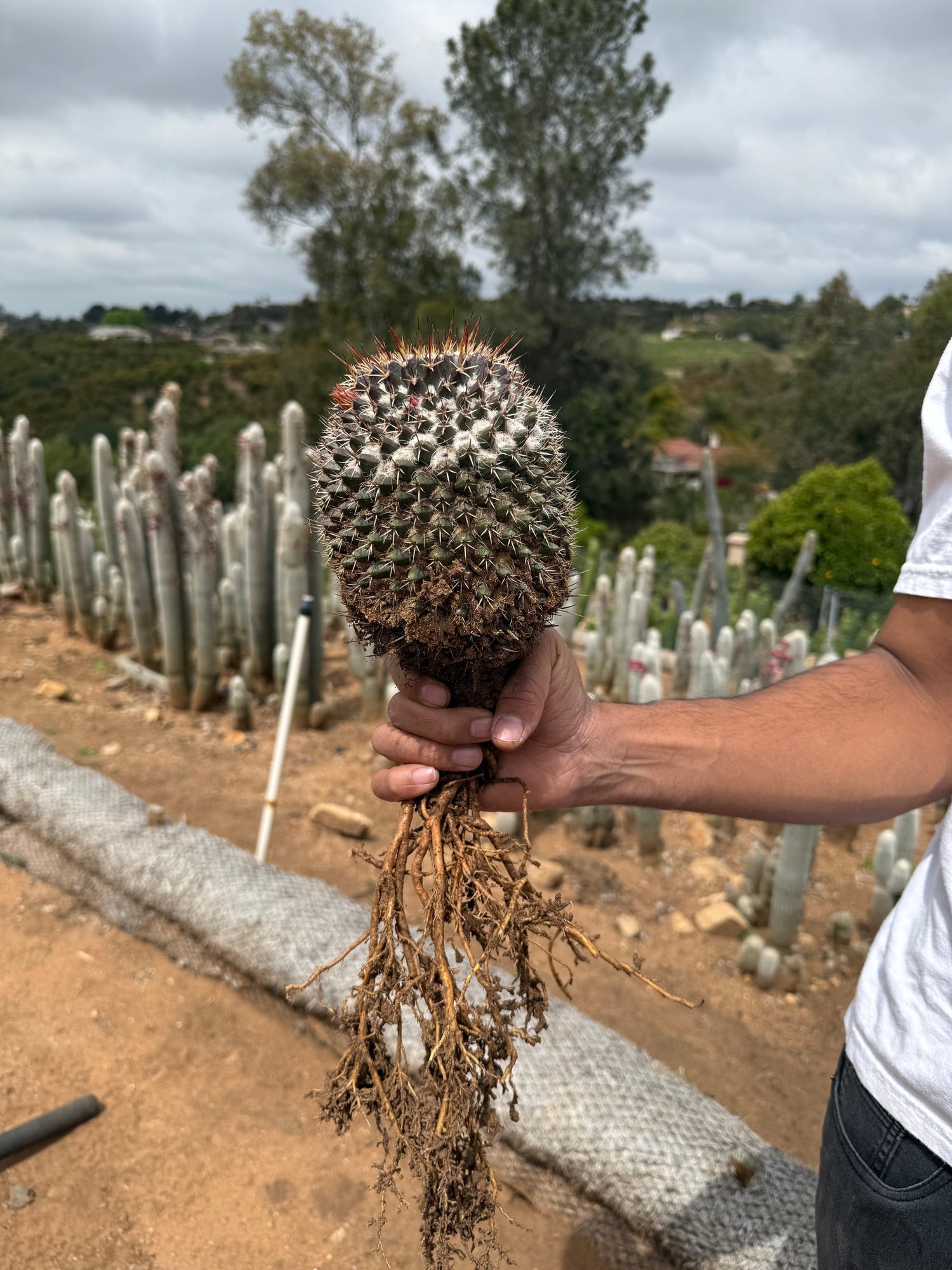 The Mammillaria specimen, shipped bare-root with intact root system.